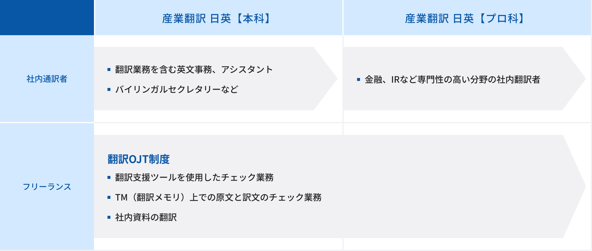 通訳・翻訳業務を含む英文事務、社内通訳(逐次、ウィスパー)、トップ付き・プール制社内通訳など